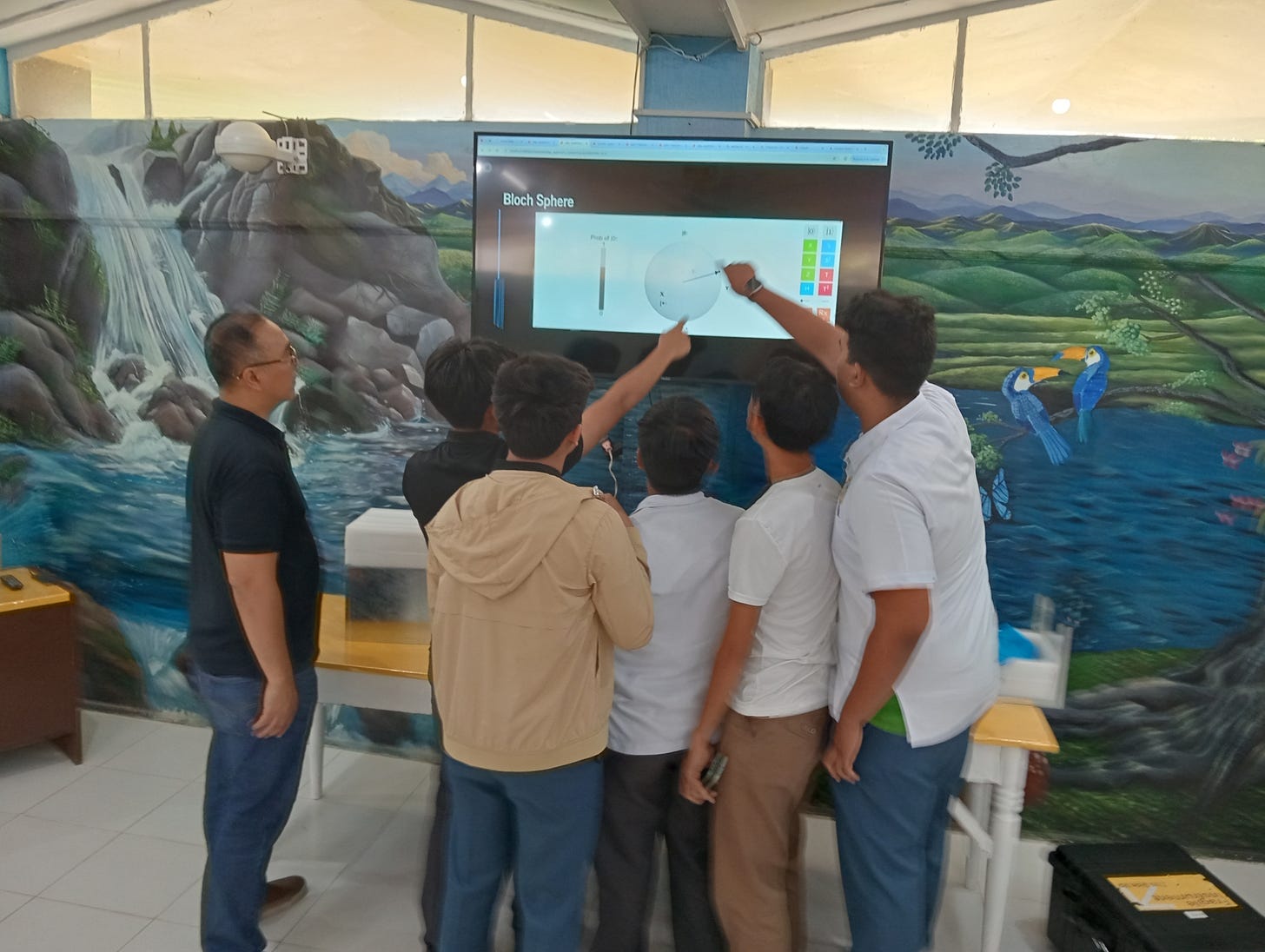 Have you ever prepared an introductory talk for highschoolers, only to find out that they know way more than you expected? It happened to me. Here’s a small group playing with a SpinQ Gemini Mini during their lunch break, as Bobby Corpus of the Quantum Computing Society of the Philippines looks on.